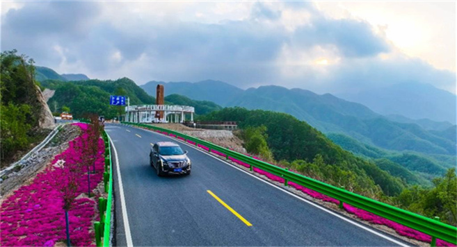石张线路在建设过程中,按照“一路一景,路景交融”的理念,利用地貌特征和人文、自然景观,打造多元动态景观系统,结合景区景点和城镇村庄布局,增设绿道、骑行道和步道,并且全线融入四季花海景观与慢行系统,创新设计特色标线及品牌标识,实现“车在路上行,人在画中游”。
