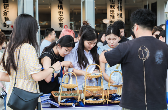 拍照打卡、亲手制作香囊——围在“移动博物馆”旁的游客们忙得不亦乐乎,小观众则对青花塔式罐萌宝格外关注,“妈妈,我能抱抱这个瓷宝宝吗,它真是太可爱了!”5岁的小女孩豆豆指着“塔式罐”人偶,眼神中充满了好奇。这些萌版的文物衍生品,成功成为了连接古今的“文化使者”。现场推出的端午限定文创更是创意十足:青花瓷纹香囊内置艾草,将“端午”与“青花”悄然链接。