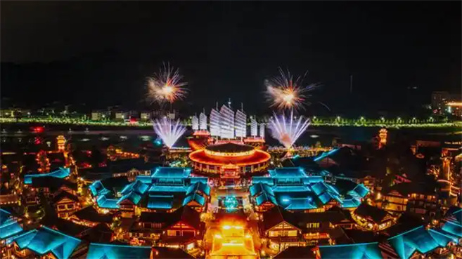 据介绍,此次“镇不错”生活节契合长假特性以及度假客群的“松弛感”需求,将国风雅韵、山野趣味与月光文艺巧妙融合。从白天到夜晚,游客不仅可以逛山野市集、参与百米长卷共绘鸾州、欣赏镜面水舞台上的汉唐乐舞与灯光秀,还可以身着汉服体验穿越之感,或在大船舞台聆听星空音乐会、参与音诗会。活动设计覆盖全时段、多年龄层,实现“一地过节、多元体验”。