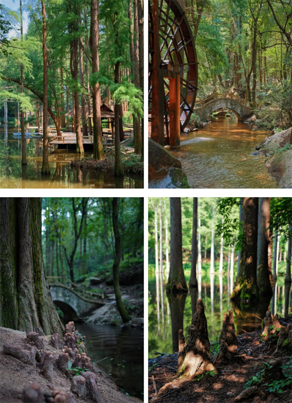 1918 年,英国林学家威廉·波尔登与中国林学家韩安先生在此收购荒山创建林场,引种北美落羽杉、池杉等珍稀树种,铸就了中国最大的落羽杉森林公园的生态基底。