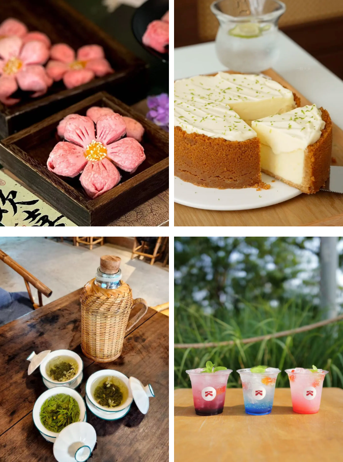 临湖咖啡区、茗茶休憩区、露营野食区、户外运动区以及亲水项目区。
