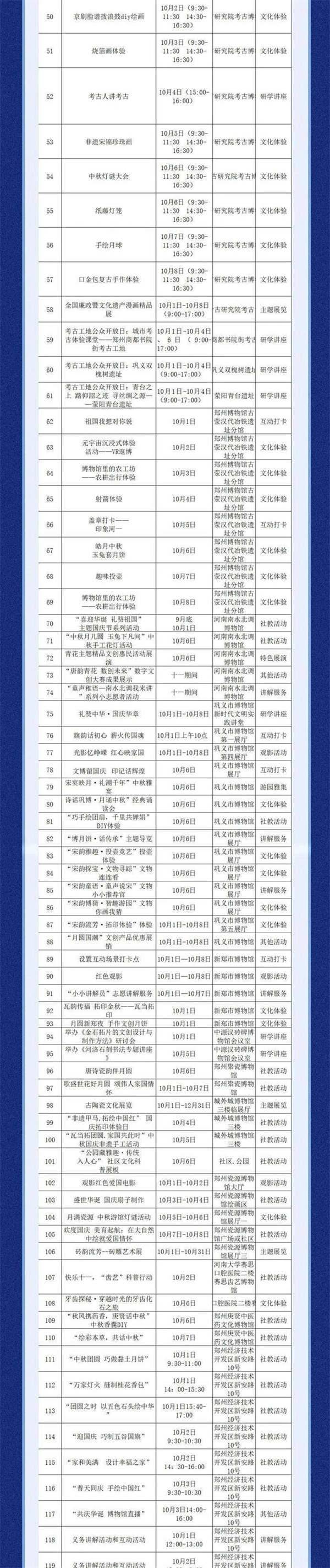 针对双节期间市民文化需求激增的特点,在市区郑州博物馆、郑州商代都城遗址博物院、郑州二七纪念馆等6家重点国有博物馆实行延时开放服务,确保市民及游客有充足时间参与活动、感受文化魅力。