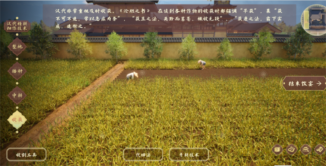田耕版块,还准备了“汉代庄园田耕记”线上互动体验,设计还原了汉代中原地区耕作流程,并与河南博物院院藏汉代农耕主题文物进行了关联,网友可亲自参与汉代田耕种植线上互动体验,认知汉代农业精耕细作的全流程,以及不同农具的操作方法。