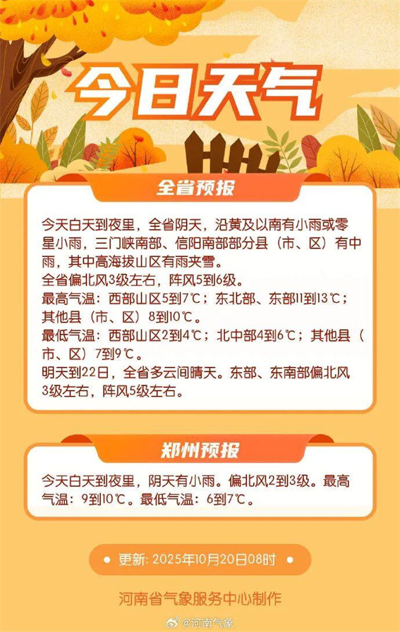 根据河南气象部门的监测,今天我省沿黄及以南地区仍有弱降水,其中三门峡、洛阳、信阳南部等地的部分县市还会有中雨,高海拔山区也可能出现雨夹雪。最低气温仅有2℃,棉袄要穿起来了。来源:河南气象、洛阳网、登封文旅、老君山风景名胜区