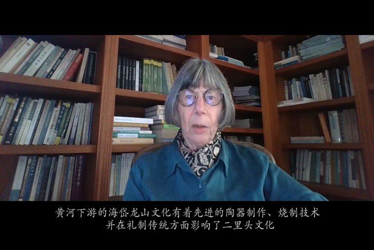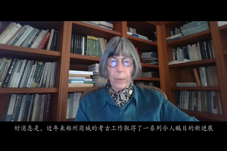 美国达特茅斯大学艾兰教授以视频形式作了题为“嵩山地区的地理意义”的主旨报告,强调了郑州商城等遗址的发现与发掘具有世界性意义,并系统阐释了嵩山地区在中华文明发展进程中的重要地位。她认为,二里头、二里岗的青铜文化形成了超越政治的“文化主导权”,其将青铜器与祭祀、礼仪紧密结合的文化“样板”被各地方文化广泛模仿与认同,为早期中华文明共同体的形成奠定了基础。同时,嵩山地区的青铜文化本身亦是多元文化互动与碰撞的产物,受到欧亚草原冶金术传入和中国其他文化的影响,如齐家文化、陶寺文化及龙山文化等。嵩山地区也是文化与地理中心,嵩山在中国早期思想中是世界中心,并有真实地理支撑:通过连接黄河、淮河、长江三大水系,可辐射至中国大部分区域。考古发现显示,二里头文化聚落在嵩山南北都有发现,表明山脉并非障碍;下王岗遗址的发现表明二里头文化通过淮河、长江水系向南影响有可行性。二里岗文化时期,以郑州商城为中心的文化交流网络得到进一步强化扩展,其他地区“过渡期”(过渡期指郑州商城与殷墟期之间的时期)之前的青铜器都与之非常相似。随着二里岗文化衰落,外围区域文化在模仿中原范式基础上进行本土化创新,铸造出地域风格青铜器,这些创新后来被殷墟青铜器吸收融合,铸就了青铜艺术的辉煌。
