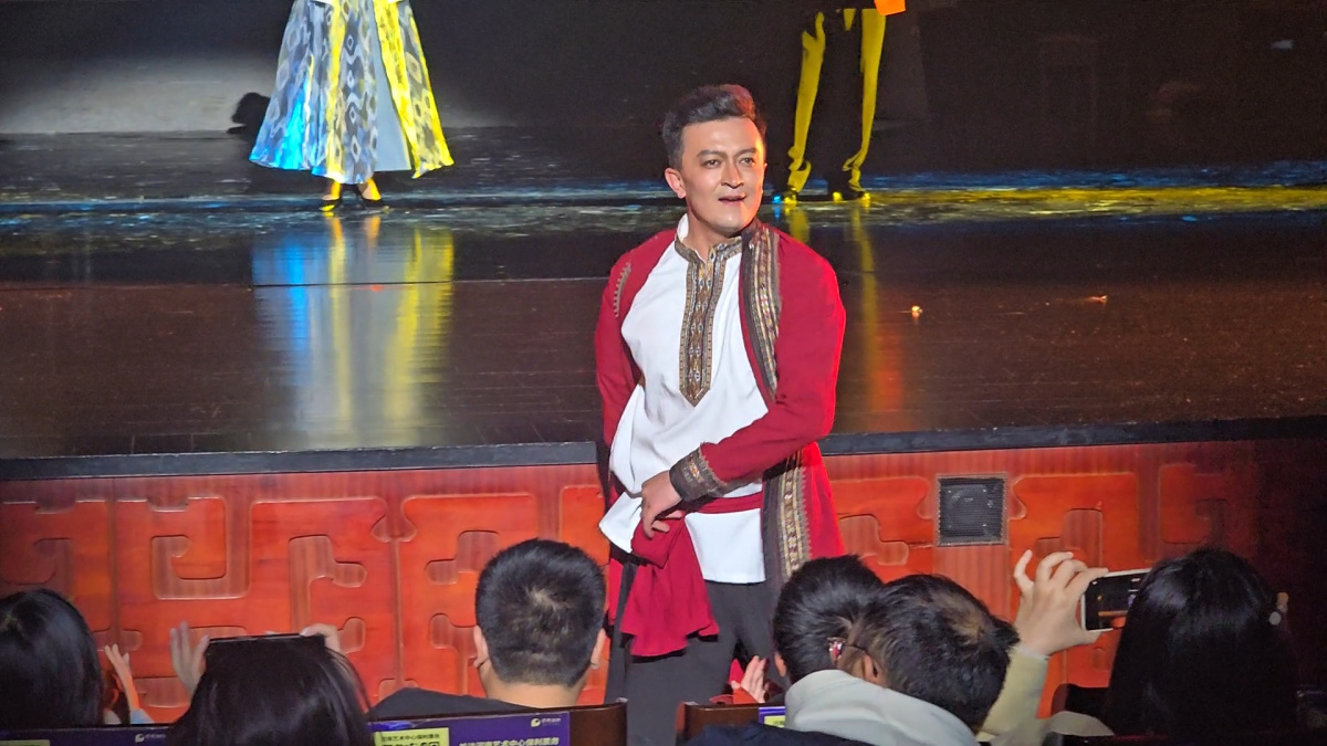 其间,演员们走下舞台,邀请观众一同起舞,掌声从零星响起逐渐汇成浪潮,欢呼声与木卡姆的乐声、脚步声相融。