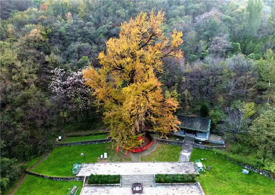 金秋十月,在济源王屋山深谷秘境中,一棵2500余年的古银杏,如时光雕塑般,在镜头下绽放跨越千年的金黄华彩。