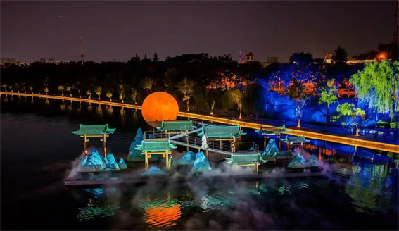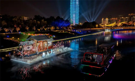 · 在城市地标“大玉米”,有《如意龙湖船说郑州》。这不仅仅是一场演出,更是一场沉浸式的水上幻梦。它将城市地标作为舞台,用光影、音乐和水幕电影,讲述郑州的故事,让市民在家门口就能享受到媲美世界级旅游目的地的夜间文化盛宴。