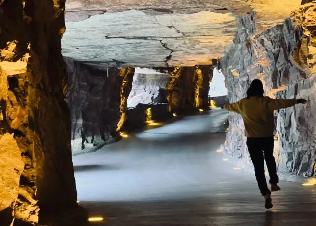 当阳光透过天窗洒落,在斑驳的岩壁上投射出光影,