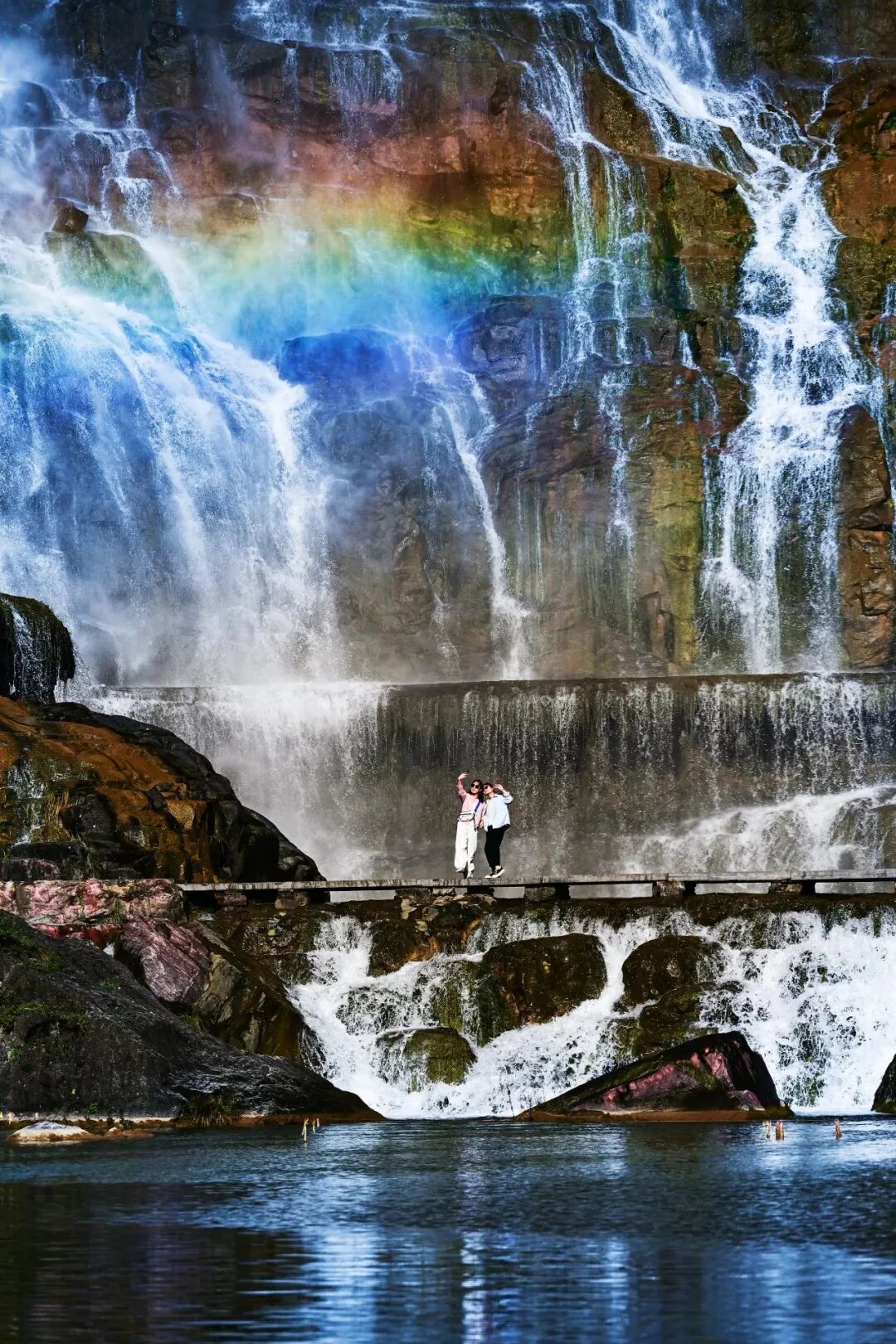 形成红叶、瀑布、彩虹相映成趣的美景,