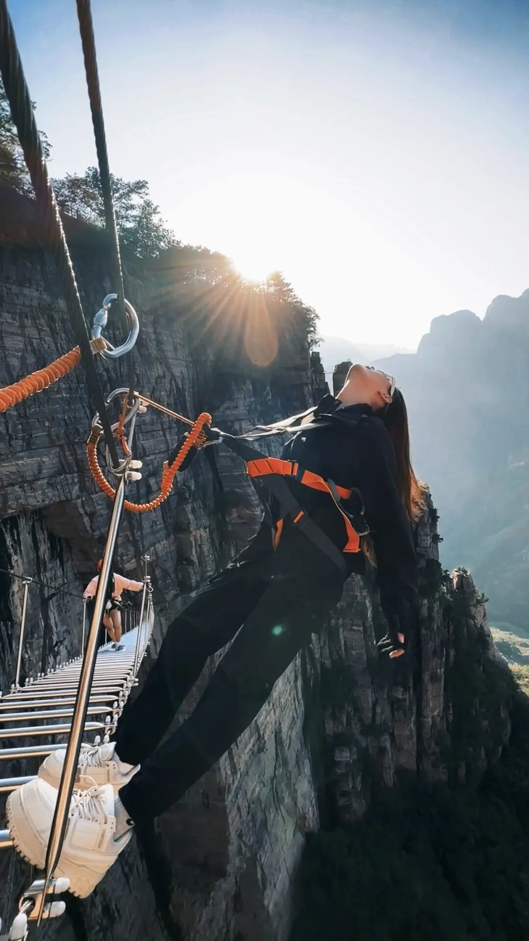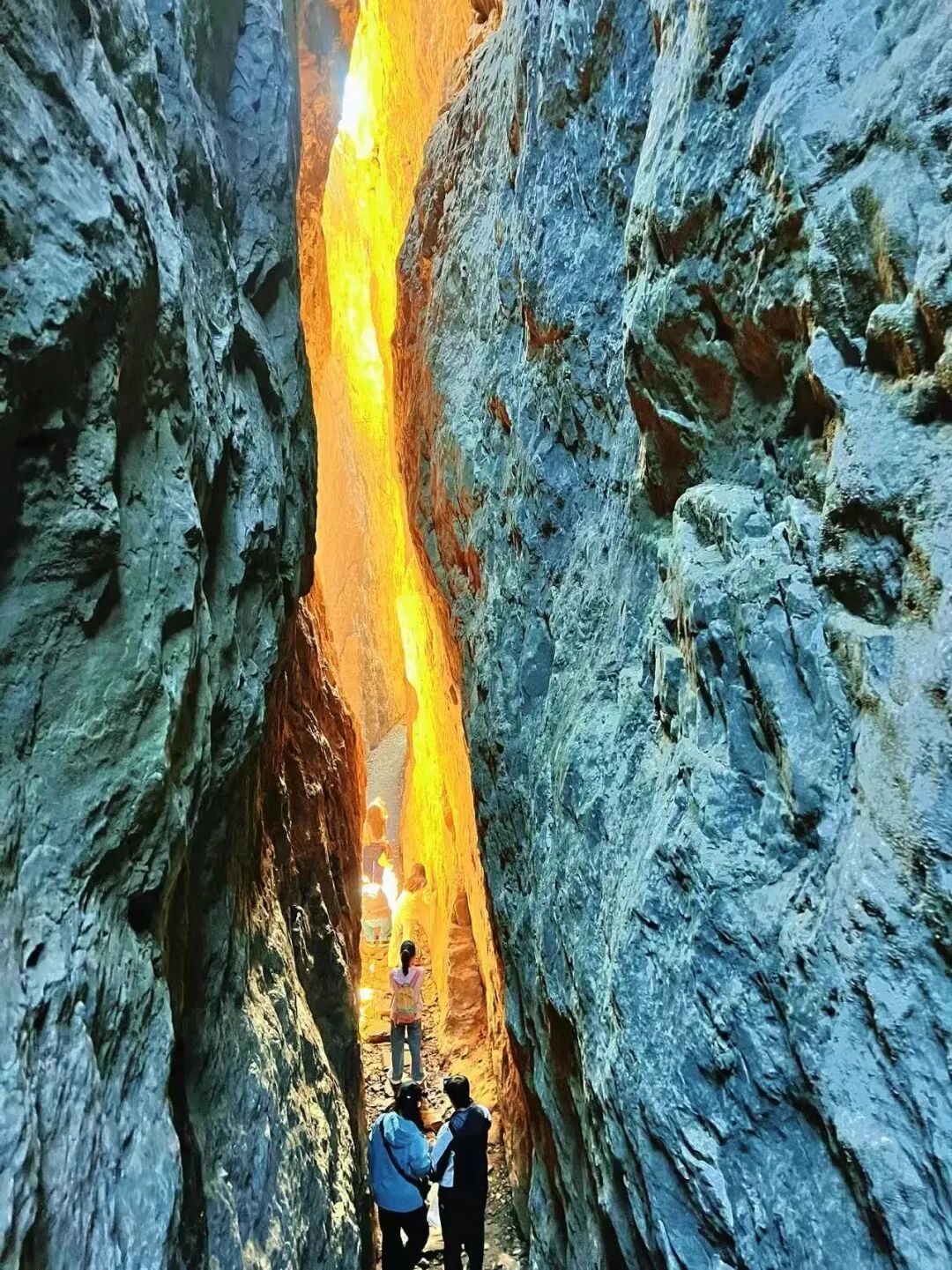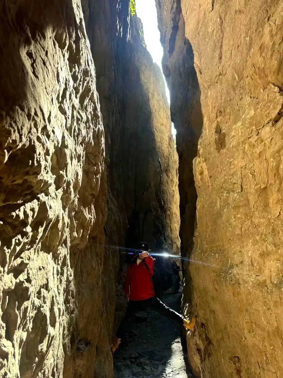 狭窄的岩壁间,阳光在石阶上洒下碎金