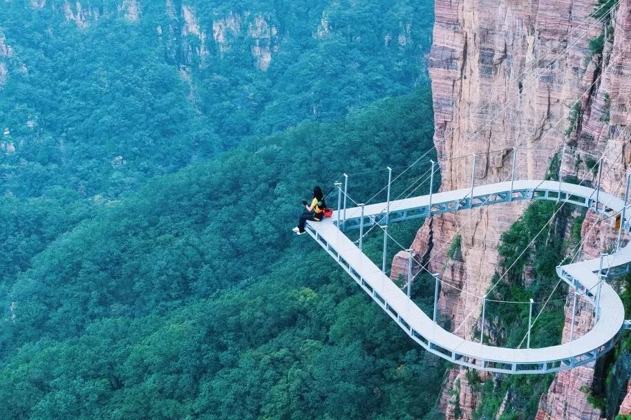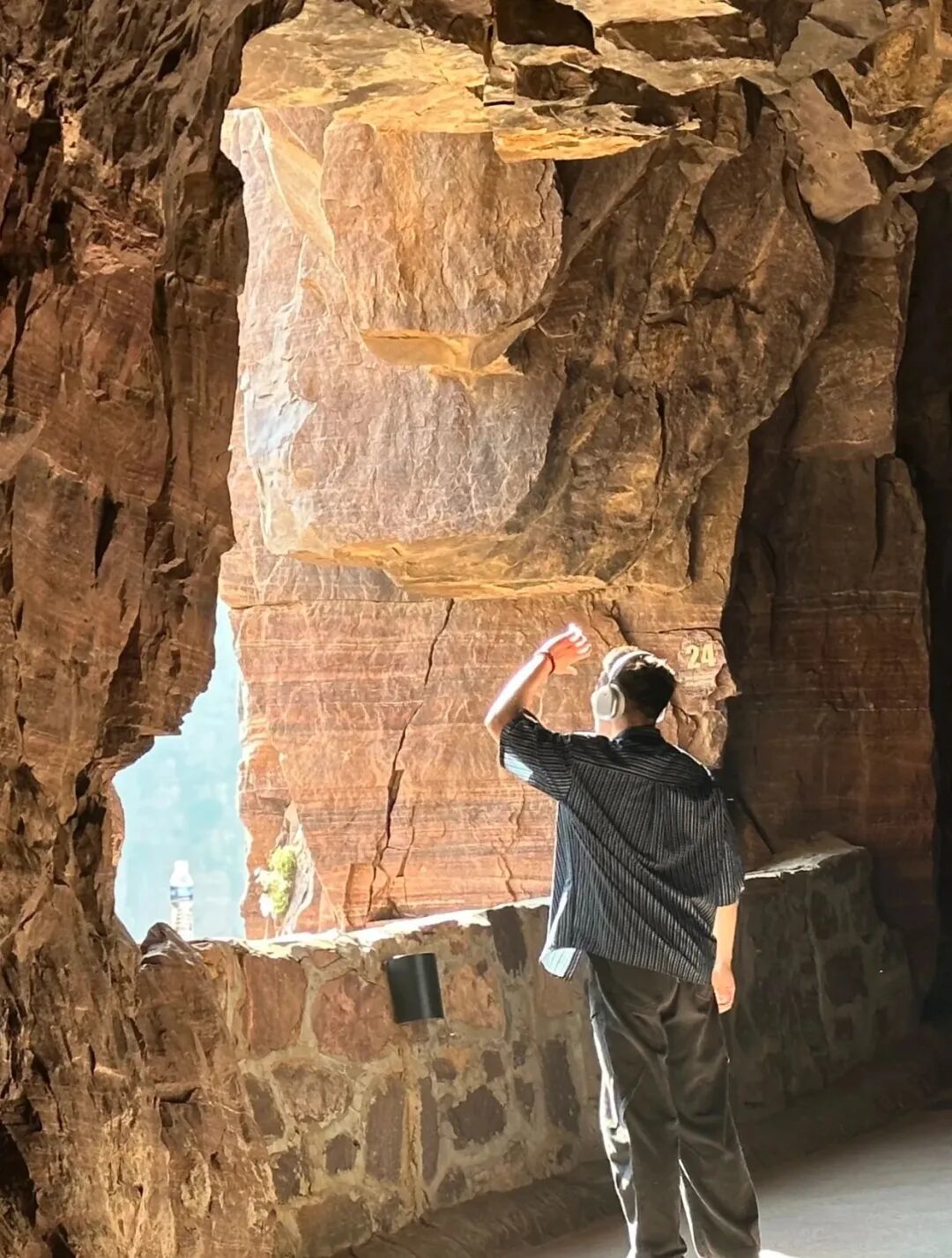 行走在郭亮挂壁公路,指尖抚过粗糙的岩壁,