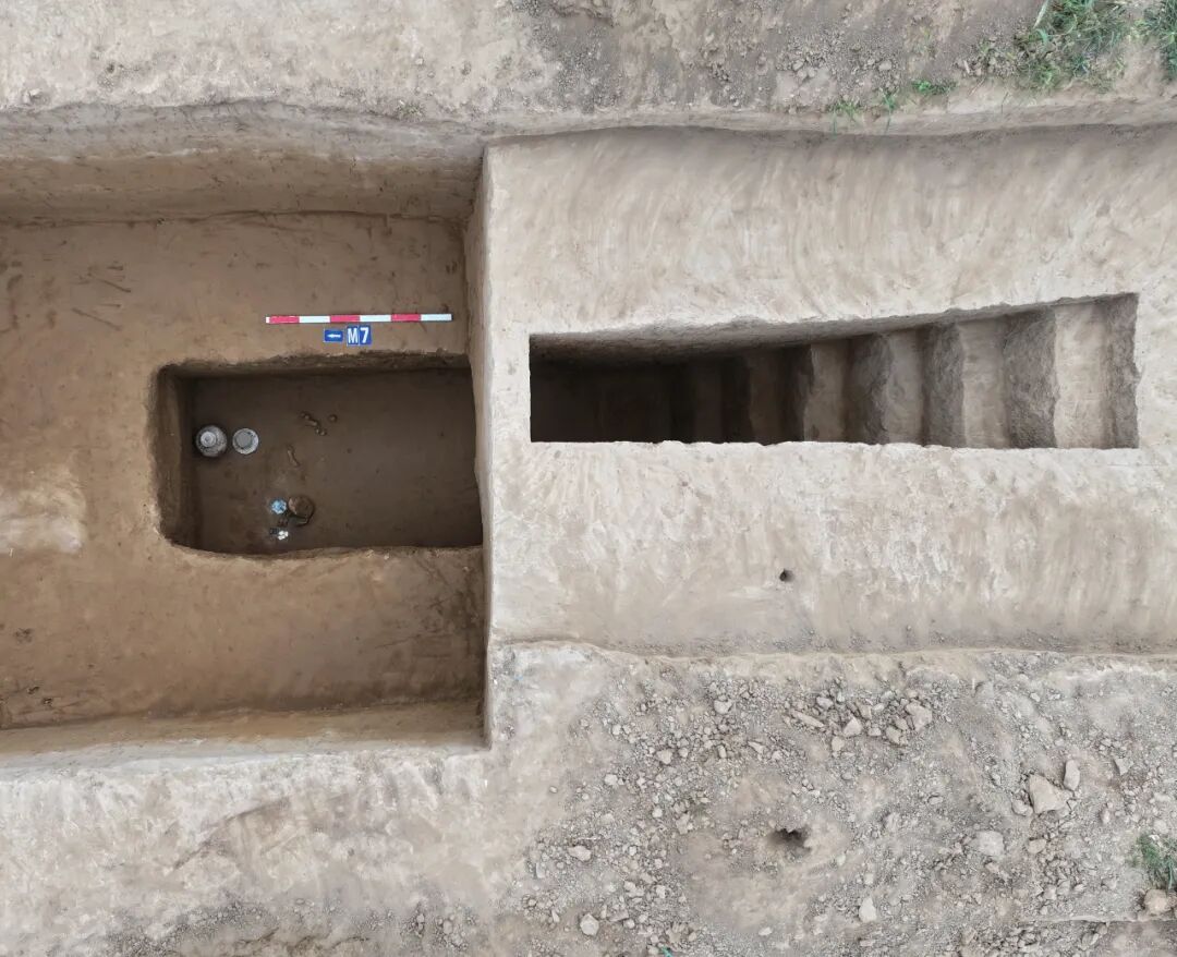经对前期考古调查勘探发现的墓葬进行发掘,发现塔形罐、三彩执壶、铜镜、铜饰件、铜钱、陶砚台等文物。