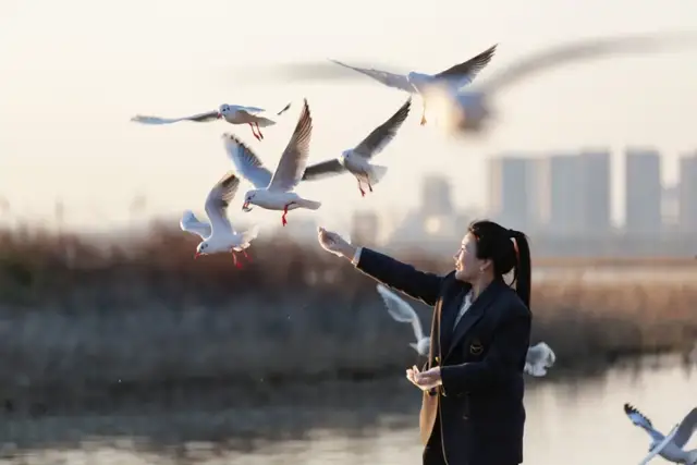 平顶山市白龟湖国家湿地公园,市民投喂红嘴鸥的画面,满是人与自然的和谐。