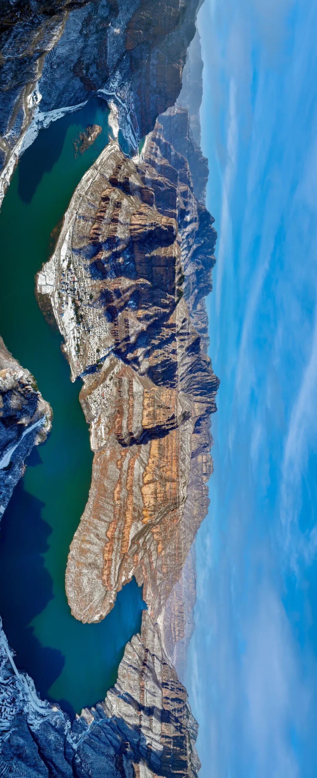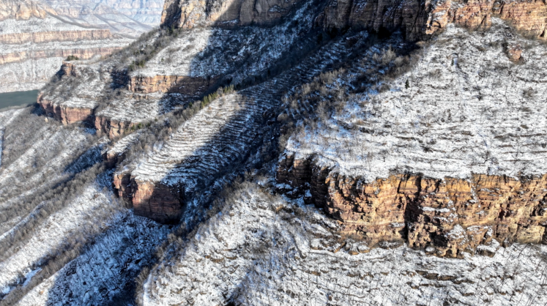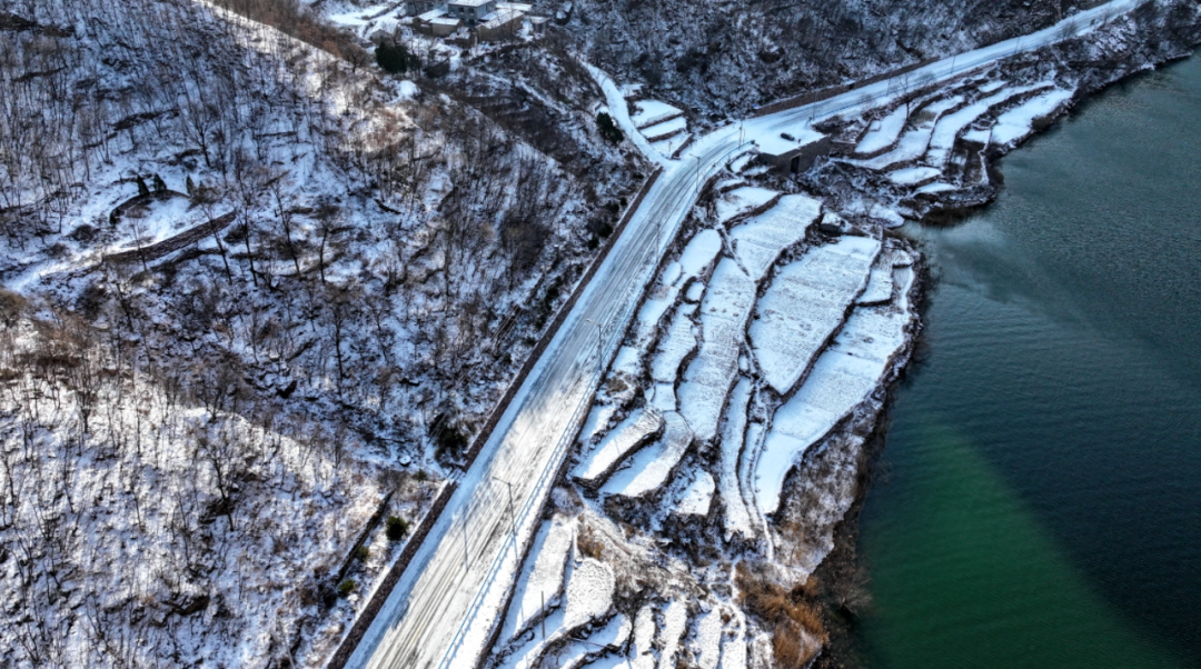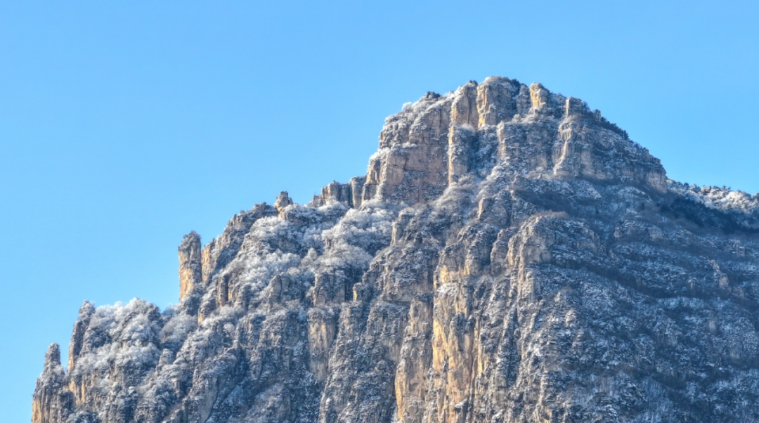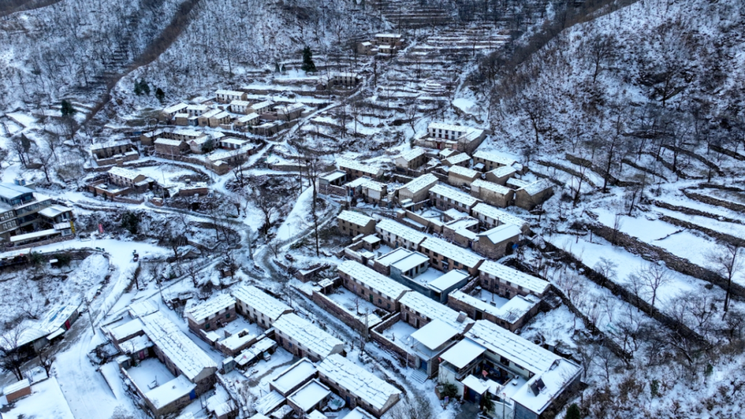受冷空气影响,林州太行大峡谷迎来今冬初雪。次日天晴,暖阳遍洒,太行大峡谷银装素裹,分外妖娆。放眼望去,白雪覆盖峰峦,红色石英砂岩与素雪相映,勾勒出雄浑轮廓;山间道路积雪铺就,沿线村落炊烟袅袅,石板房脊顶雪层如棉。澄澈湖水如翡翠流转,湖岸冰雪晶莹,碧水与雪山交相辉映;岸边林木凝霜挂雪,玉树琼枝间,山、雪、水、村相融一体,绘就一幅静谧雄奇的冬日画卷,美不胜收。
