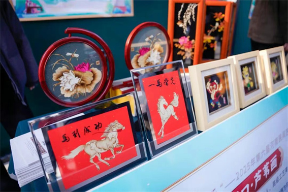 踏入市集,仿佛走进了中原文化的“博物馆”。郑州烙画线条流畅,以火为笔勾勒花鸟山水;洛阳汝瓷天青釉色温润,精致刻花尽显宋韵雅致;焦作绞胎瓷纹理交错,一器一形皆藏匠心;济源剪纸栩栩如生,花鸟人物饱含乡土气息……此外,济源土炒馍、花米团、冬凌茶等特色农产品也备受青睐。