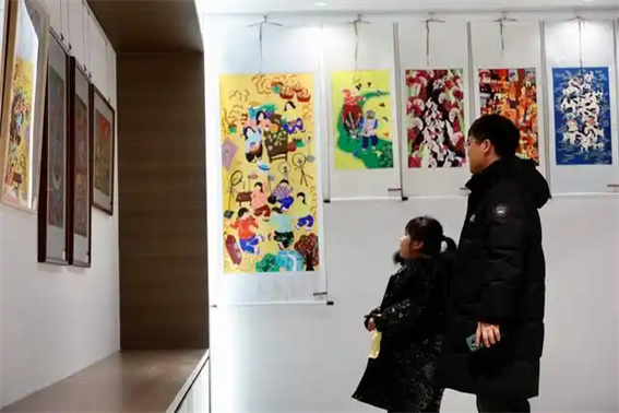 拾级而上,二层“墨润华章”书画展厅尽显艺术魅力。错落展墙与独立展柜间,168幅历代及当代内黄相关书画精品错落排布,涵盖楷书、行书、国画等多种形式,其中63幅乡土气息浓郁的农民画与105幅笔墨神韵十足的书画作品尤为夺目。展厅特设“墨韵轩”微型工作室,定期邀请本地书画家现场创作,观众可近距离观摩,还能预约简易书画体验,让静态艺术变身动态文化传播与美育实践。