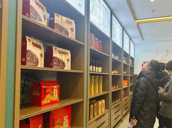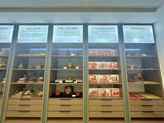 三层“匠心传承”非遗展厅是文旅融合与互动体验的核心,集中展示内黄44项237件及周边五县四区13项95件非遗项目,分设乡土印记、乡音乡艺、匠心工坊、仁心济世四大板块,实现“见人见物见生活”的活态传承。冯氏水陆年画、泥刀马泥塑精巧雅致;罗卷戏、大平调、打铁花等表演艺术通过投影与道具重现热闹场景;康氏红枣醋、三元烧鸡等非遗美食飘香美食品鉴区;杜庄赵氏膏散、李氏正骨术等非遗医药传承人坐诊提供健康咨询,让非遗深度融入日常生活。