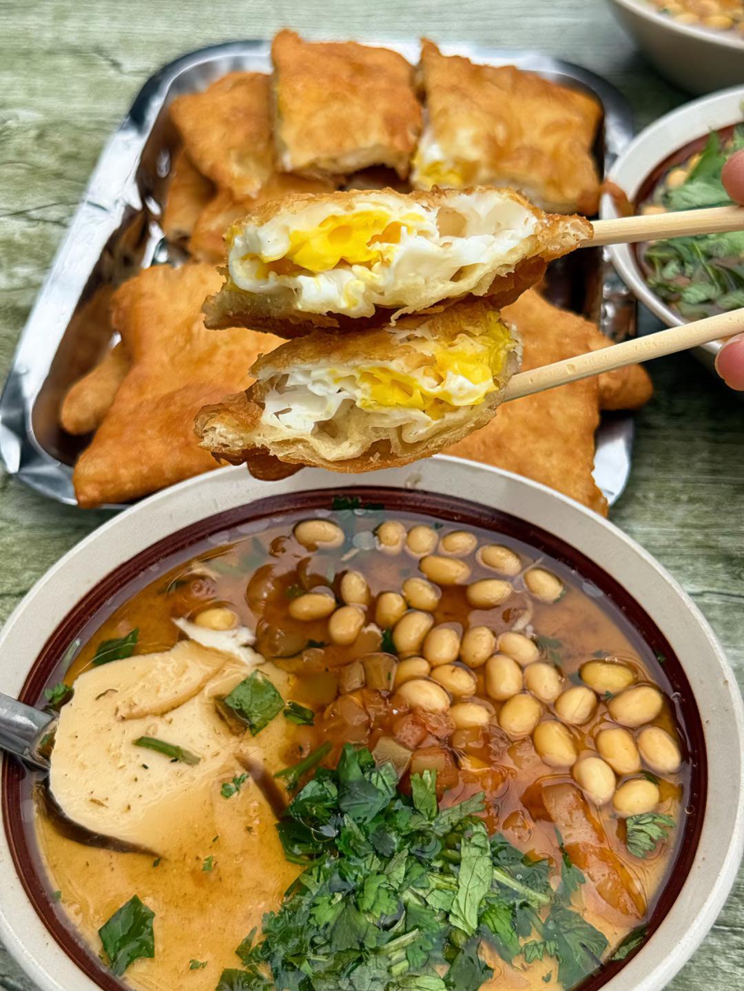 一口下去,先是胡椒的烈,紧接着是豆香的柔,咸鲜适口,层次丰富。再配上油馍头蘸着吃,这就是河南人的地道早餐。