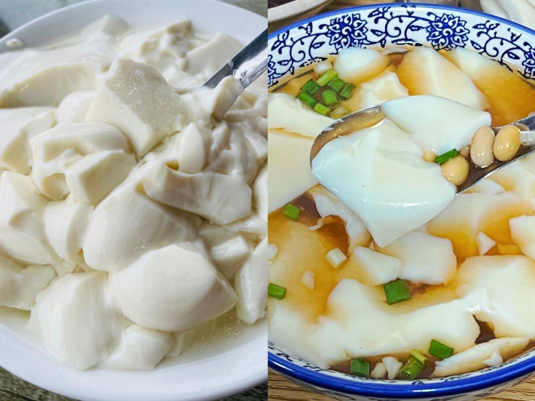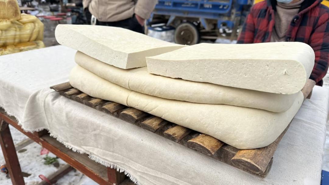 这种豆腐制作极讲究,用上好的浆水点制,做出来的豆腐颜色微黄,质地细腻却不松散,拿在手里duang duang地颤。
