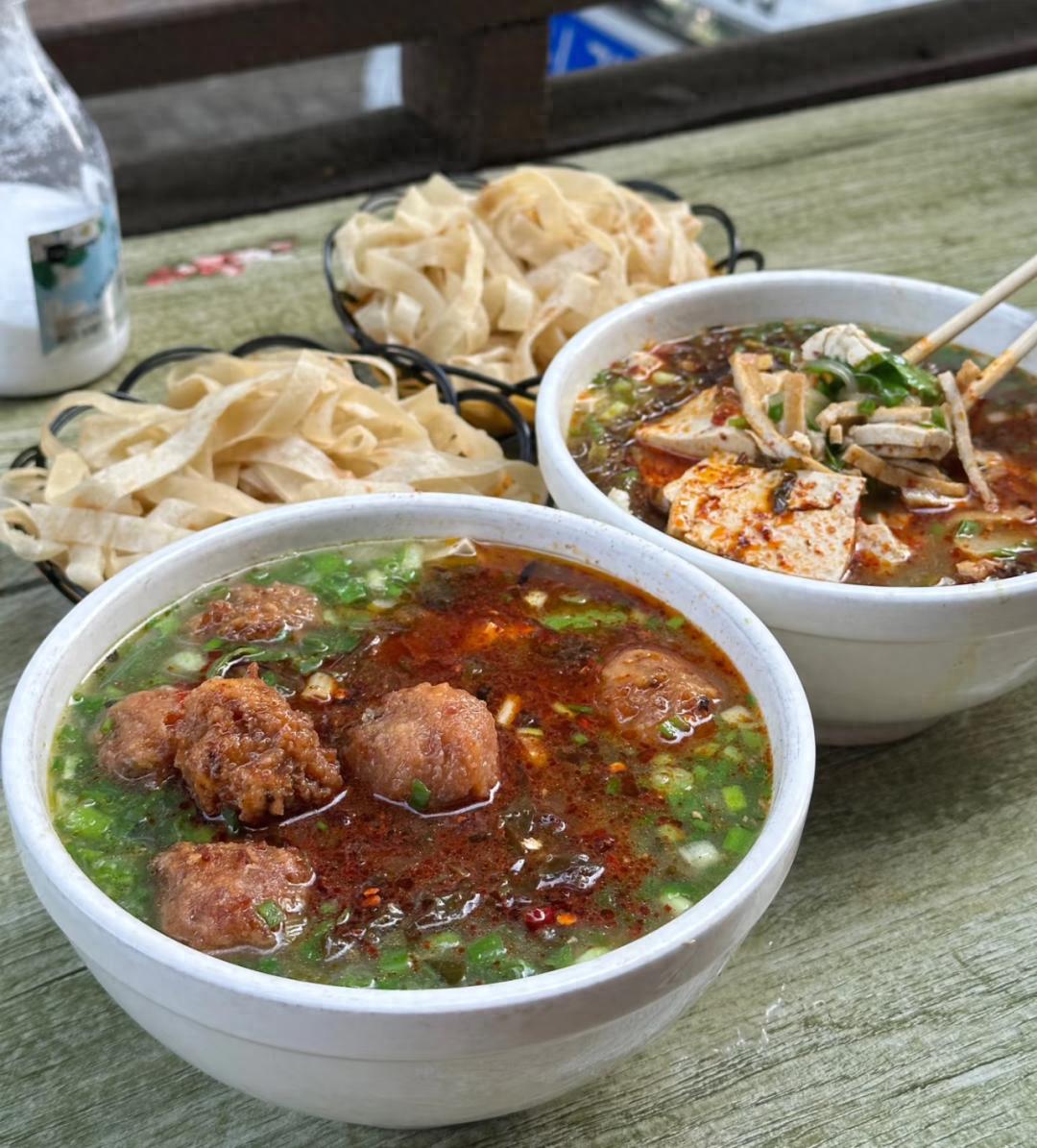 不论是哪种汤底,一把炸得金黄焦脆的丸子少不了,再配上葱花、姜丝、香菜。豆腐嫩得入口即化,丸子吸饱了汤汁外软里酥,再泡上一份饼丝。这一碗下肚,舒坦!