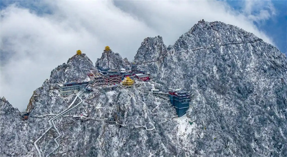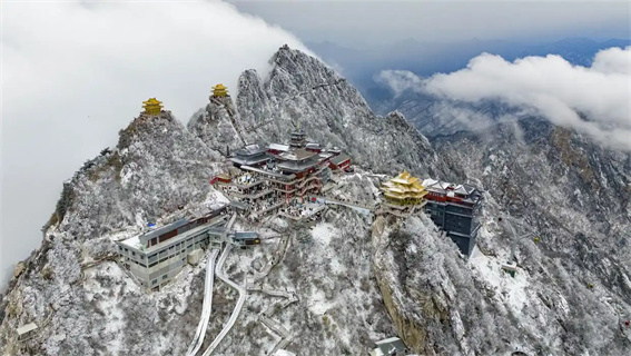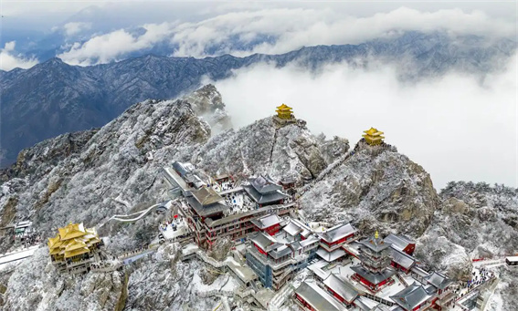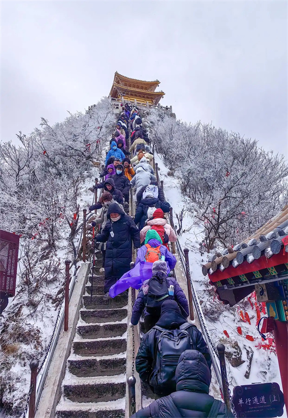 12月20日,洛阳市栾川县雪后的老君山景美如画,吸引众多游客前来拍照打卡。
