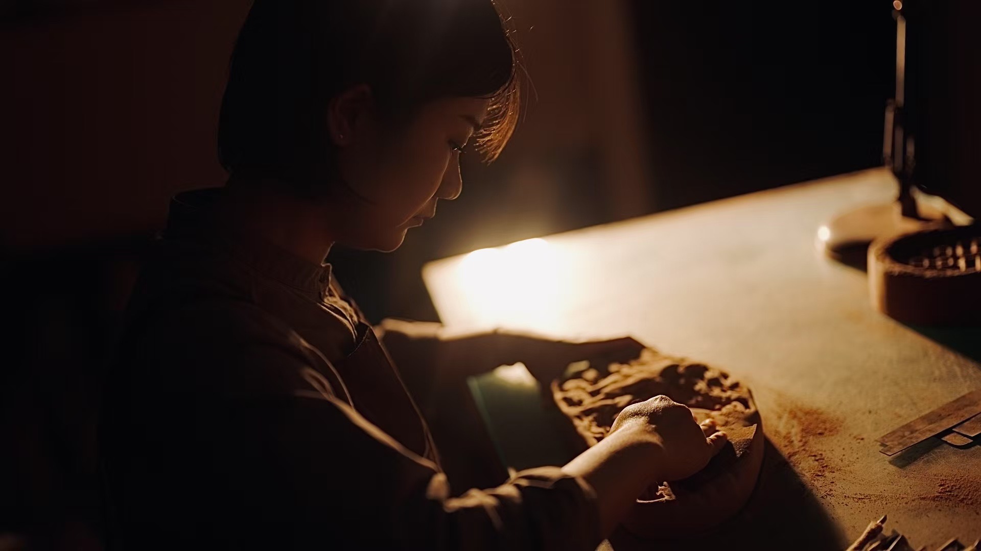 1990年,游敏萌生了为香港回归制作大型澄泥砚的念头,泡、搅拌、陈腐等多道预处理,光这一步就要3到4年,才能剔除杂质、匀化成分。游晓晓说:“之后要手工塑形、雕刻,再入窑烧制15到20天,全程得日夜守着控火候,有时就和衣睡在窑口。”最神奇的是窑变,不施加任何釉料,全靠泥里的矿物质、窑内氛围和摆放位置,出来的颜色可能是鳝鱼黄、蟹壳灰,也可能是玫瑰红,谁都无法预料。而这,正是澄泥砚的魅力所在,“每一方均独一无二,是大自然与匠心的共同馈赠。”