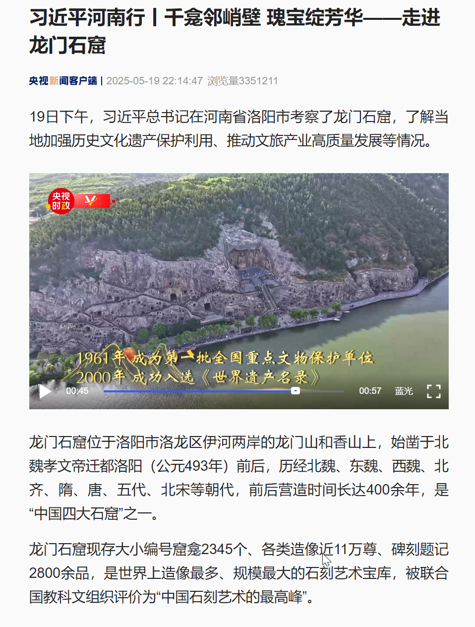 从国家级媒体的权威发声到地方媒体的贴心呈现,篇篇报道勾勒出龙门石窟的文化魅力与时代活力。龙门石窟的持续“破圈”,不仅是一座石窟的热度证明,更是中华文化穿越千年、生生不息的生动写照。