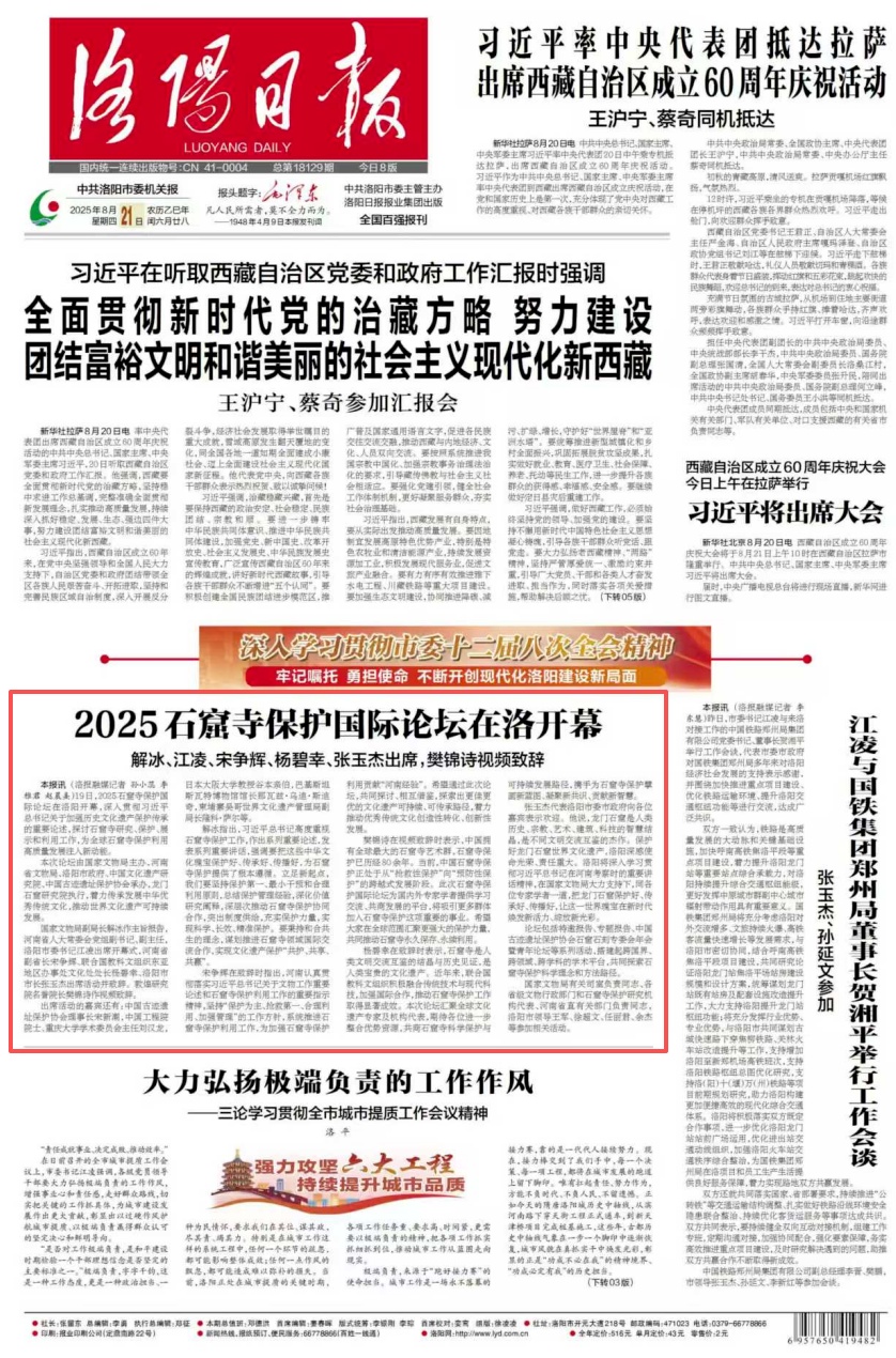 洛阳日报尽显本土温度与专业深度,在《从龙门二十品看文物保护创新》一文,聚焦书法艺术瑰宝的数字保护,让传统文化“活起来”;《2025石窟寺保护国际论坛在洛开幕》则呈现洛阳作为文化遗产保护前沿阵地的国际视野,彰显其在全球石窟寺保护与研究领域日益提升的话语权与影响力。