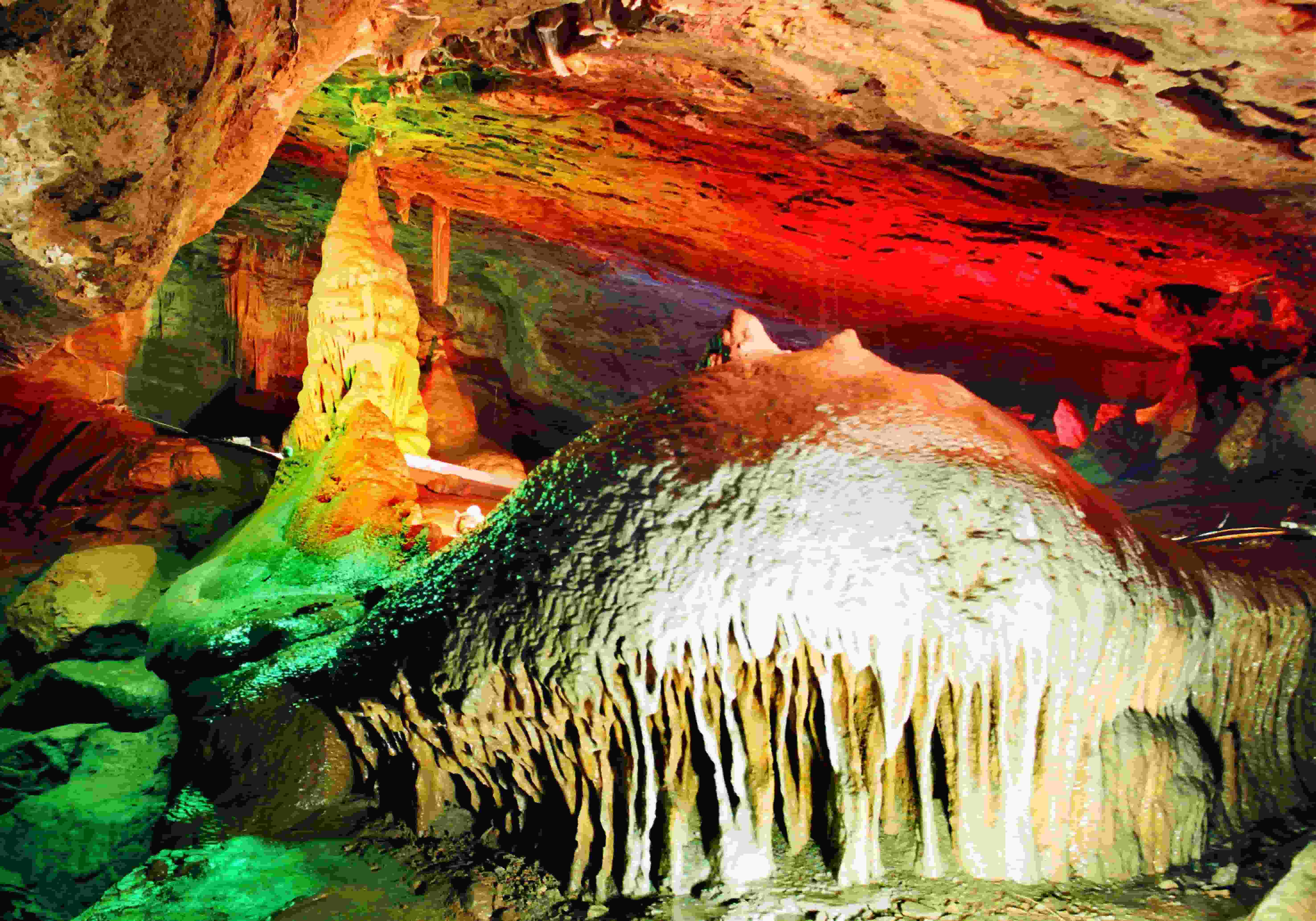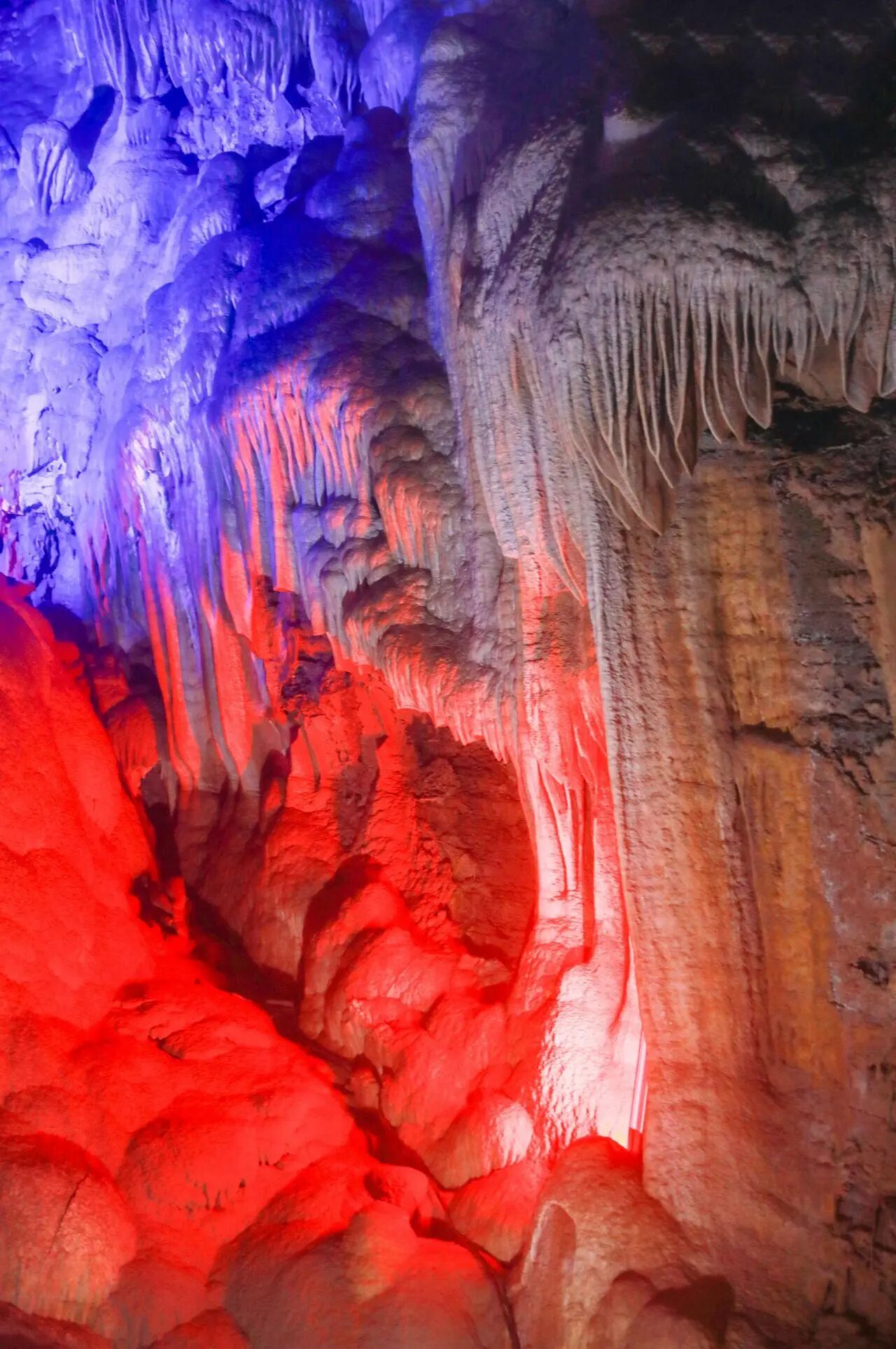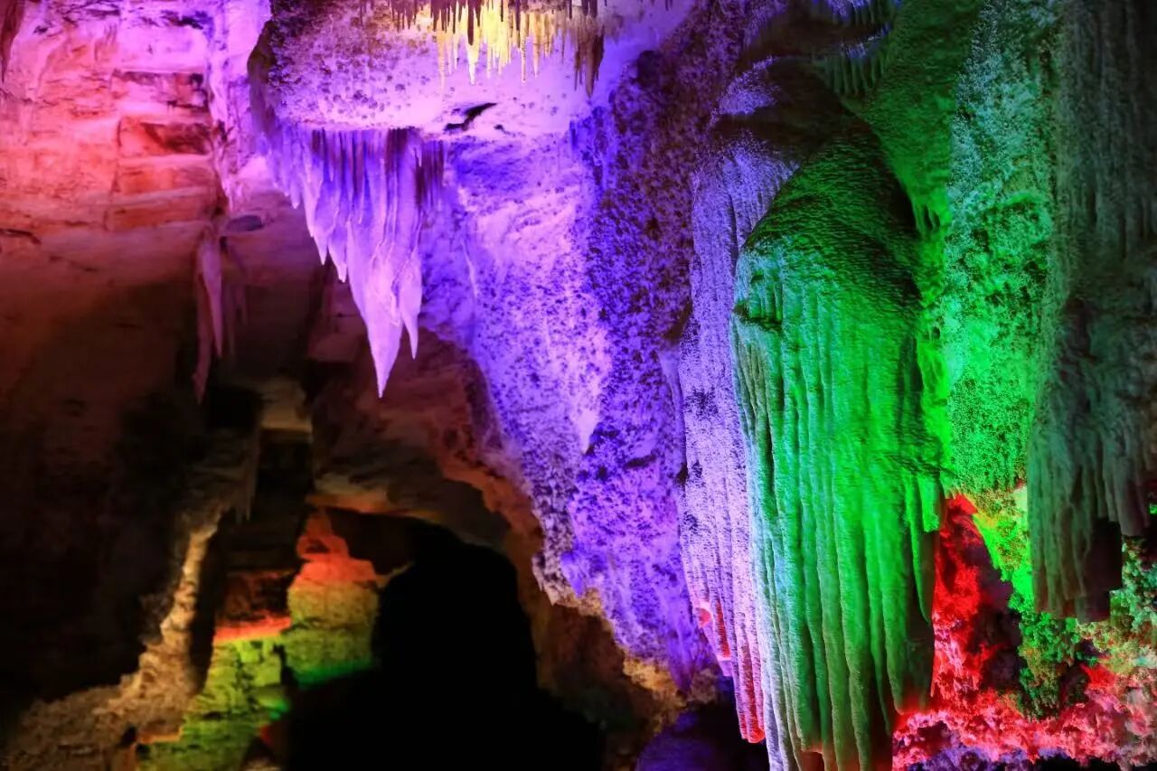 踏入雪花洞,瞬间穿越至一个恒温的奇幻世界。这里四季如春,温暖宜人。千百年形成的钟乳石、石笋、石幔、石花姿态万千,在精心设计的灯光下流光溢彩,仿若一座辉煌的地下水晶宫。