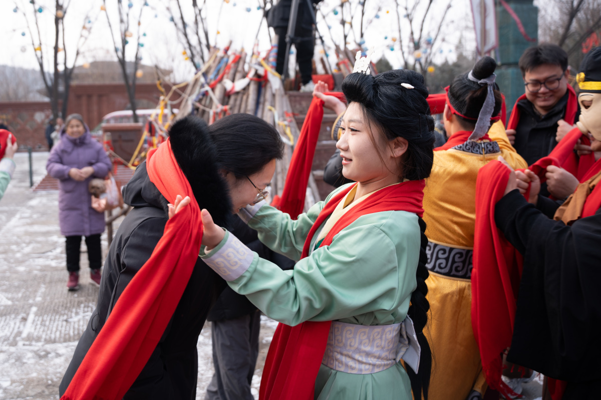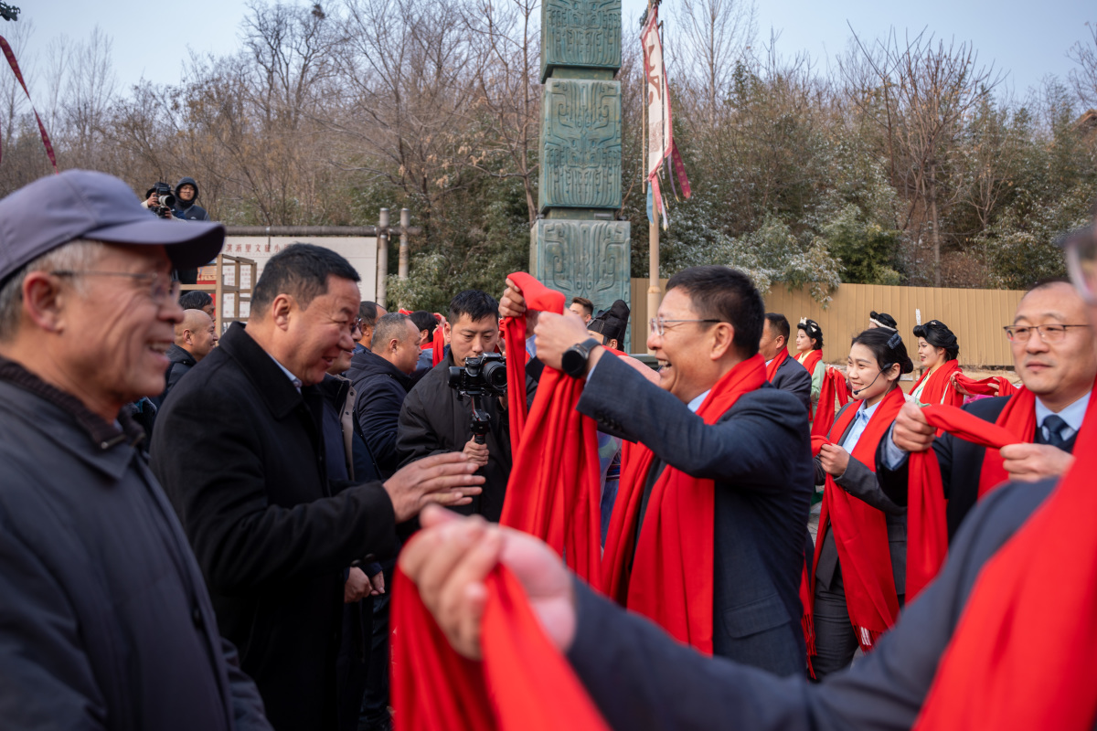 当日上午,淇淅里广场在冬日暖阳中苏醒,活力四射的快闪秀率先拉开活动帷幕。随后,“宣言赠巾”环节庄严而温馨,一方方丝巾传递着万泉湖人的真挚谢意。《爱在殷商》《妇好出征》主题演出接续登场,再现殷商风云与英雄风骨。