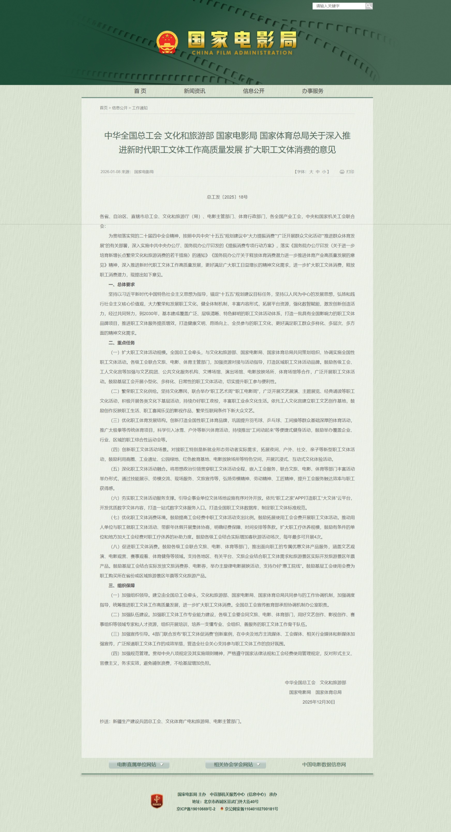 近日,全国总工会、文化和旅游部、国家电影局、国家体育总局联合印发了《关于深入推进新时代职工文体工作高质量发展扩大职工文体消费的意见》(以下简称《意见》)。