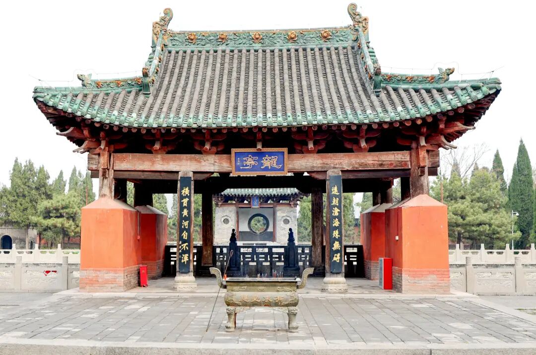临渊门是北海祠的大门,是济渎庙内唯一的元代建筑,但明清时期更换了部分建筑构件。临渊门之后是北海祠的核心建筑龙亭,因北临济水之源——龙池而得名,是历代帝王祭祀北海神的场所。这座建筑也很有特色,明代早期重修,保留有部分元代构件,檐柱粗壮,檐额下部具有宋元建筑特征。
