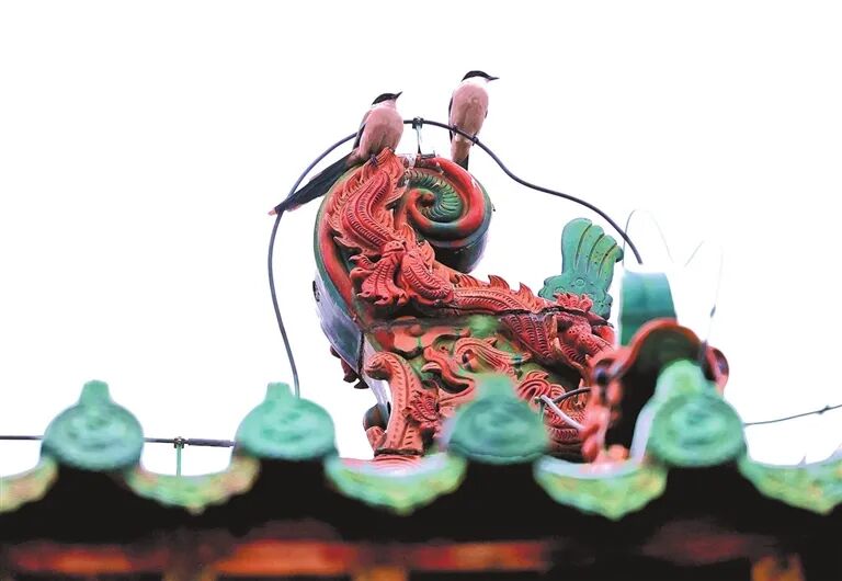 孙丽娟介绍,大门由三间四柱悬山式牌楼和两侧掖门组成,仅用四根硕大的单排木柱撑起三间屋顶,虽历经几百年的风雨沧桑,如今结构依然稳固,是河南省现存规模最大的明代木结构牌楼建筑。