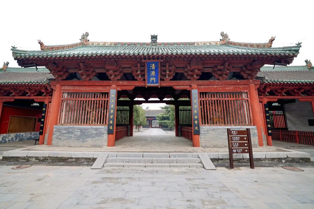 从清源洞府门向前,是长近200米的御道,道分三条,文东武西。沿着石板路缓缓前行,御道尽头就是明代中期的建筑清源门,这是济渎庙的第二道大门。清源门为单檐悬山式建筑,主门用材硕大,构件制作规整,是研究明代建筑珍贵的实物资料。