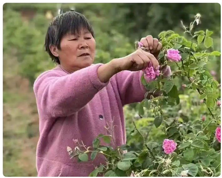 三年后的五月中旬,漫山玫瑰盛开、鲜香扑鼻。采摘季里,附近村民戴着头灯深夜上阵,在日出前将带露玫瑰采收完毕送到收购点,按斤计酬的模式让娴熟农户一次能赚100多元。这份“家门口的收入”,让村民们看到了致富希望。