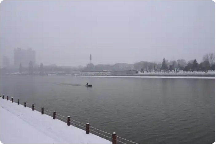 1月19日,漫步漯河沙澧河风景区,沙澧河在雪中静卧如一幅水墨长卷。两岸垂柳凝霜,千丝万缕的银枝低垂水面,似玉帘轻悬,风过时簌簌抖落晶屑,惊起涟漪揉碎冰镜中的云影。远处泰山路大桥横跨沙澧河两岸,七彩钢铁拱廊披着雪袍倒映河中,桥索如琴弦,静候风雪奏响冬之序曲。