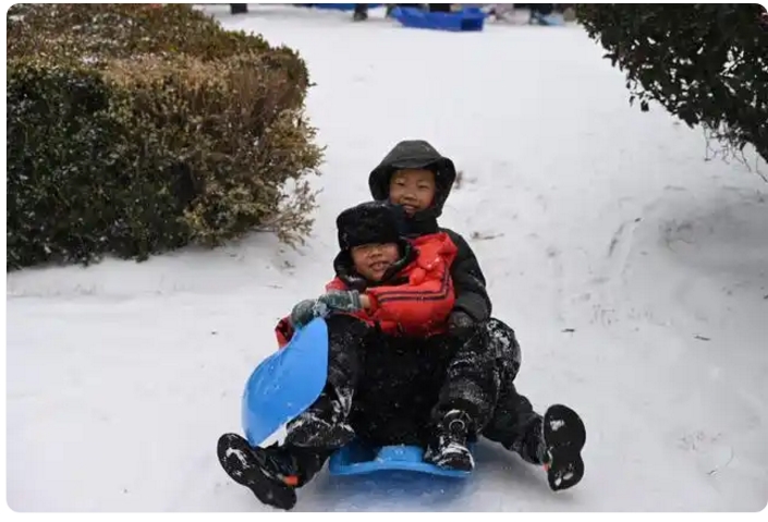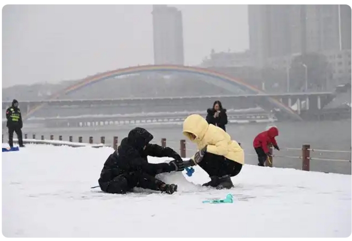 一个小男孩踉跄着扑进雪堆,抬头时睫毛沾满霜花,却咧着嘴举起冻红的手掌:“妈妈看!我抓住冬天啦!”年轻的父亲蹲身捏着雪球,悄悄塞进儿子衣领,惹得惊呼与追逐惊飞了枝头的积雪。