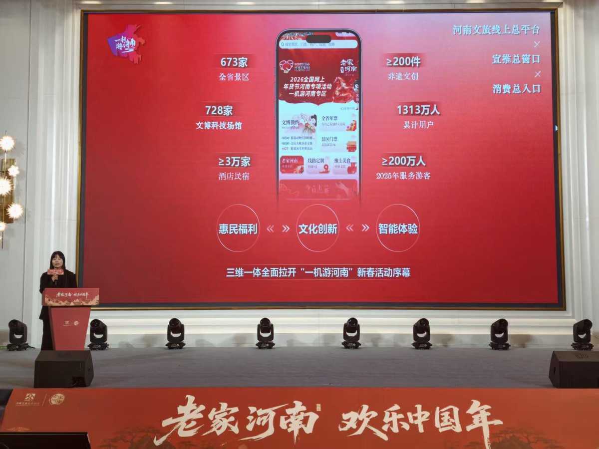 活动现场,银基国际旅游度假区、只有河南·戏剧幻城、建业电影小镇、郑州阜民里、HILLANDS大地之丘、清明上河园、洛邑古城、太行大峡谷、红旗渠、五朵山、丹江大观苑、鸡公山、波尔登森林公园13家景区及“一机游河南”平台推介了各具特色的春节活动安排,从沉浸式演艺到非遗体验,从自然探秘到人文打卡,全方位展现了河南文旅喜迎新春、服务游客的热忱与创意。