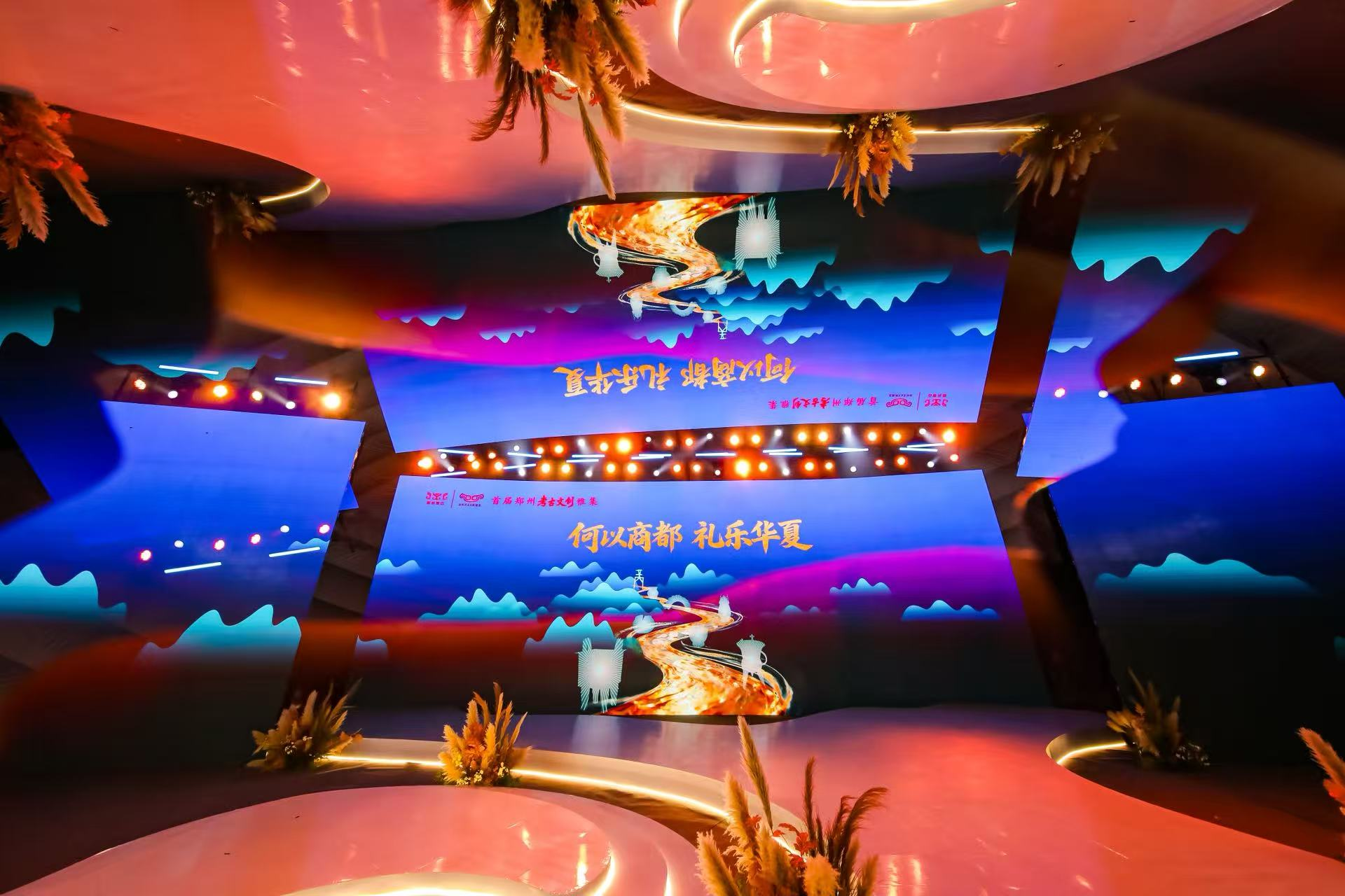 展演以一场名为《天地之中》的国风灯光秀破题。演出摒弃了传统的语言介绍,直接以光为笔,在舞台上勾勒星轨、投射圭表、再现古城轮廓。短短几分钟,将郑州作为华夏文明发祥核心所承载的“定鼎中原、观象授时”的古老宇宙观,以极具视觉冲击力和现代感的方式具象化,瞬间奠定了整场活动“贯通古今”的宏大基调。