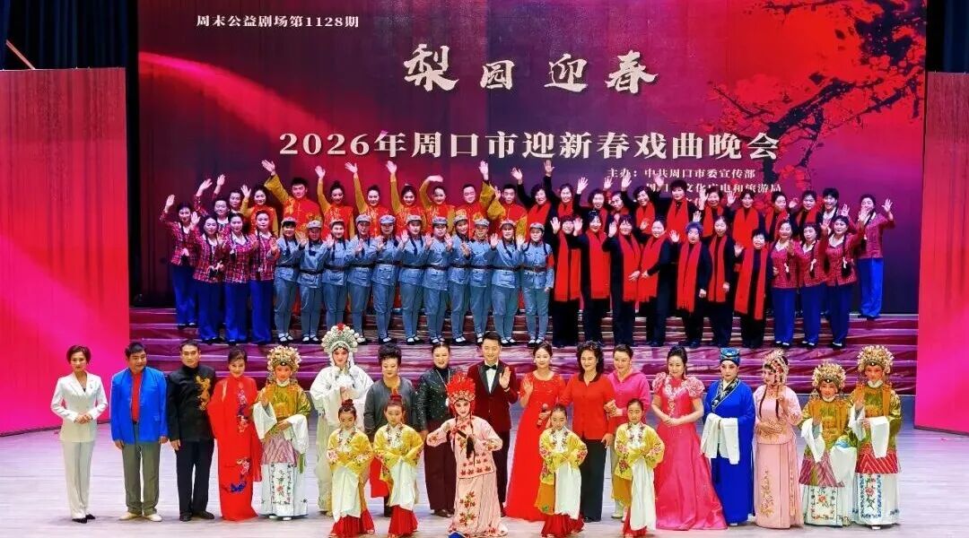 1月30日晚,周末公益剧场(1128期)“梨园迎春”2026周口市迎新春戏曲晚会在市人民会堂成功举办。本次晚会以“传承经典、喜迎新春”为主题,通过丰富多彩的戏曲表演,为市民送上浓浓的年味与祝福。活动吸引近千名市民到场观看,同时同步开启线上直播渠道,打破空间限制,让未能亲临现场的群众足不出户便可沉浸式领略传统戏曲的独特魅力,喜迎马年新春佳节。