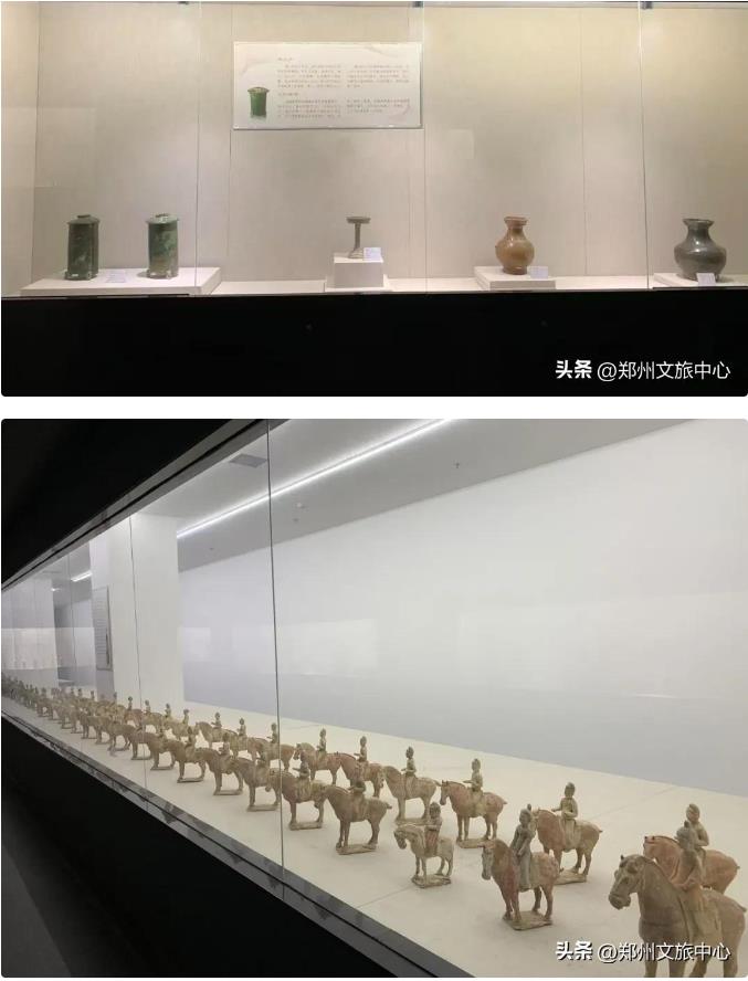 博物馆建筑面积达12000平方米,展厅面积1100平方米,虽以陶瓷专题为核心,却藏纳着纵贯五千年的文明印记。现有藏品484件套,涵盖陶器、瓷器等核心系列,年代上溯新石器时代,下至唐宋,其中隋唐文物尤为亮眼——隋代青瓷莹润素雅、造型清秀,唐代三彩艳丽奔放、气势昂扬,列队陶马肃穆雄壮,人物俑神态鲜活,既有胡人送别俑的千古柔情,也有“西瓜皮”发式孩童骑马俑的童真意趣,直观呈现了历史潮流与文化风格的演变。