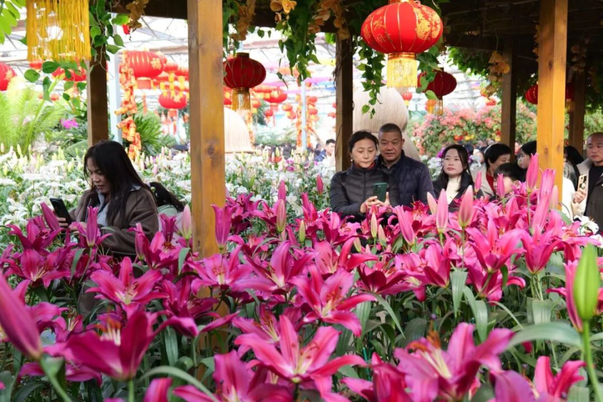 4000㎡的智能温室内,5万株、40个品种的百合盛情绽放,汇成一片烂漫花海。本次“迎新春百合花展”将百合花卉艺术与春节元素巧妙融合。展区以红、金为主色调,百合与灯笼、福字、中国结交相辉映,形成“百花迎春,万福临门”的吉祥画卷。游客不仅可欣赏百合竞放,还可在“花开富贵”“锦上添花”等特色打卡点与花卉合影,感受“赏百花、纳万福”的游园体验!地点:智能温室