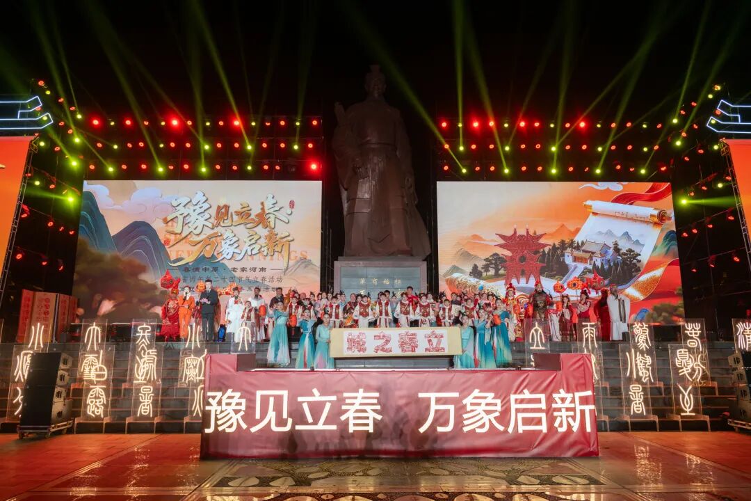 仪式最后,全体演员手持灯笼登台,伴随节气官的祈福声、齐鸣的鼓声与万家灯火的大屏影像,全场灯光共同点亮,将“豫见立春·万象启新”的氛围推向顶点。