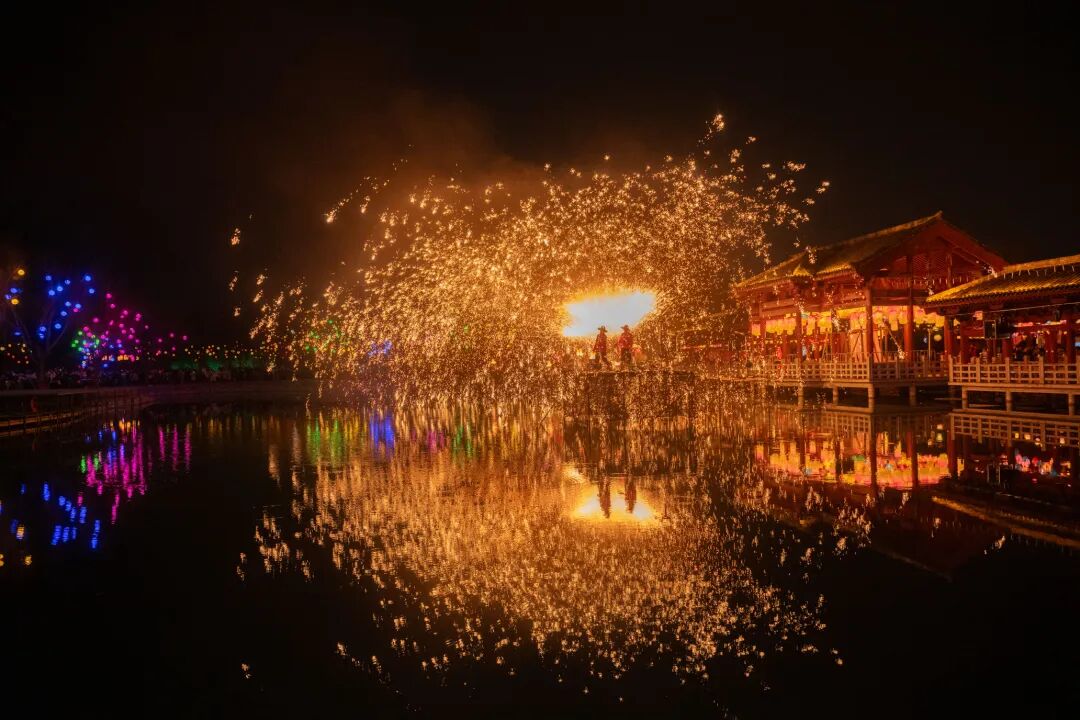 芒砀山旅游区以汉礼仪展示、汉风市井体验、马年祈福为核心,融入神仙汉服 NPC 赐福、主题灯展等元素,开园纳福、汉宫大婚、百戏雅乐等活动,带你沉浸式体验汉文化新春;日月湖景区的音乐喷泉,光影与水花交织,打造视觉与听觉的双重盛宴。