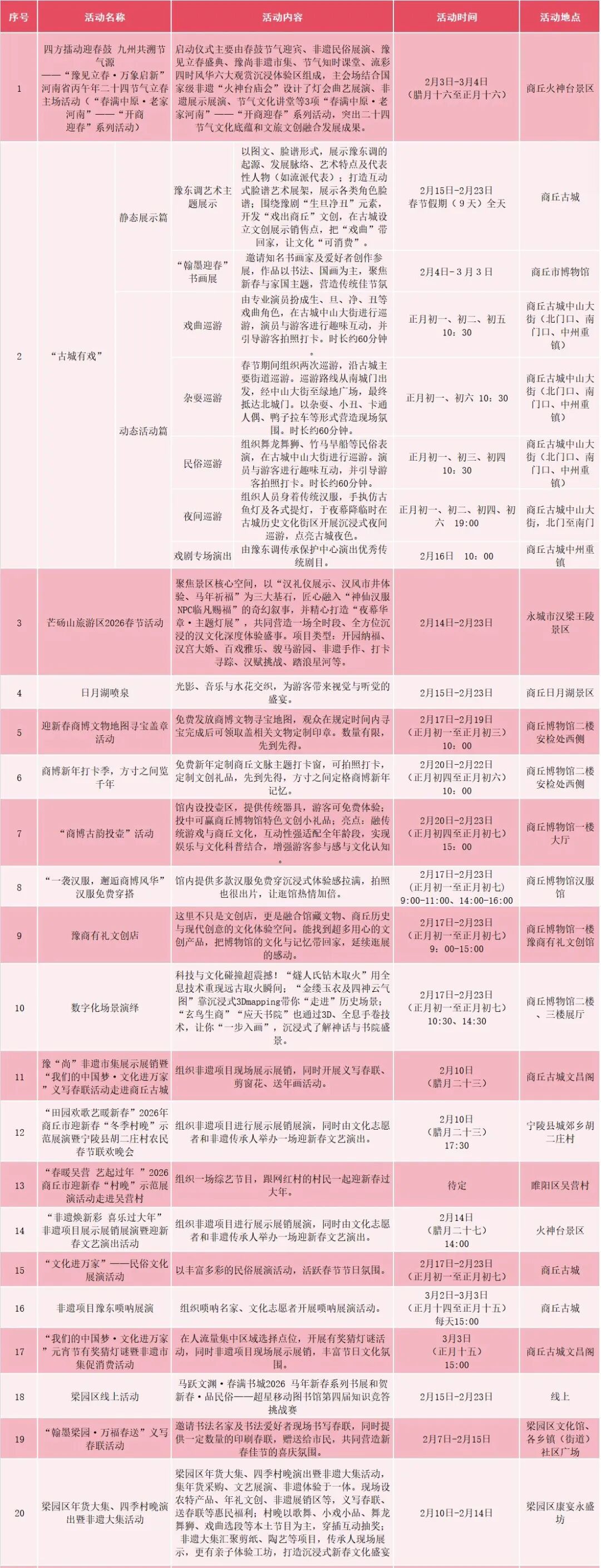 附:2026商丘市春节假期重点文旅活动汇总表