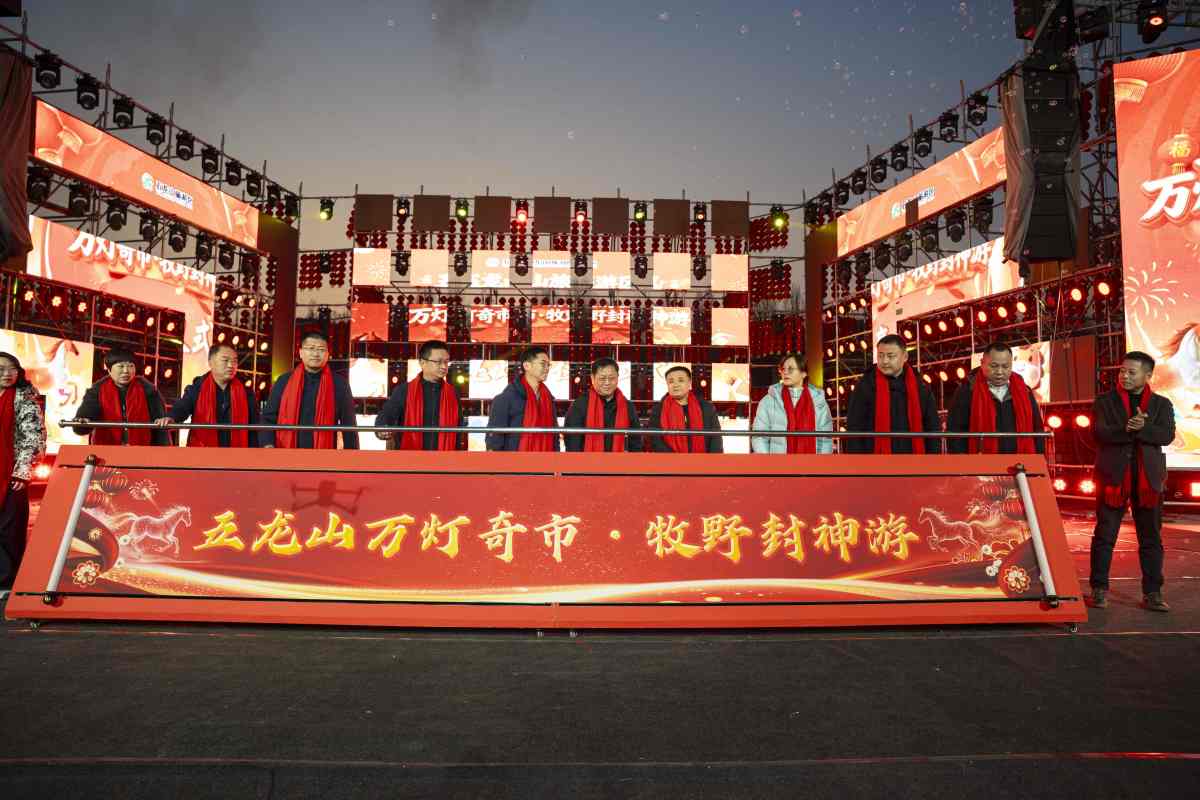 五龙山旅游区景区董事长宣布,河南五龙山旅游区2026年迎新春“万灯奇市·牧野封神游” 正式启幕!刹那间,游乐园及夜游路段灯光同步绽放,璨灯火与腾空而起的烟花交相辉映,将五龙山的夜空渲染成一片辉煌的星海。此刻的璀璨不仅点亮了景区,更标志着五龙山在2026年新春夜游经济的全面发力。