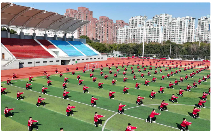 与此同时,在安徽合肥春晚分会场,1300名塔沟学员正与其他表演者协同排练,共同打造科技与人文交融的视觉盛宴。该分会场舞台以徽派建筑马头墙为设计灵感,搭配直径15米的可升降球形LED屏与地面互动大屏,与学员们的武术表演形成虚实呼应。塔沟学员的节目巧妙融合凤阳花鼓、黄梅戏等安徽地域文化元素,将武术动作与民俗艺术相结合,在光影矩阵映衬下,尽显“科里科气、文里文气”的独特韵味。