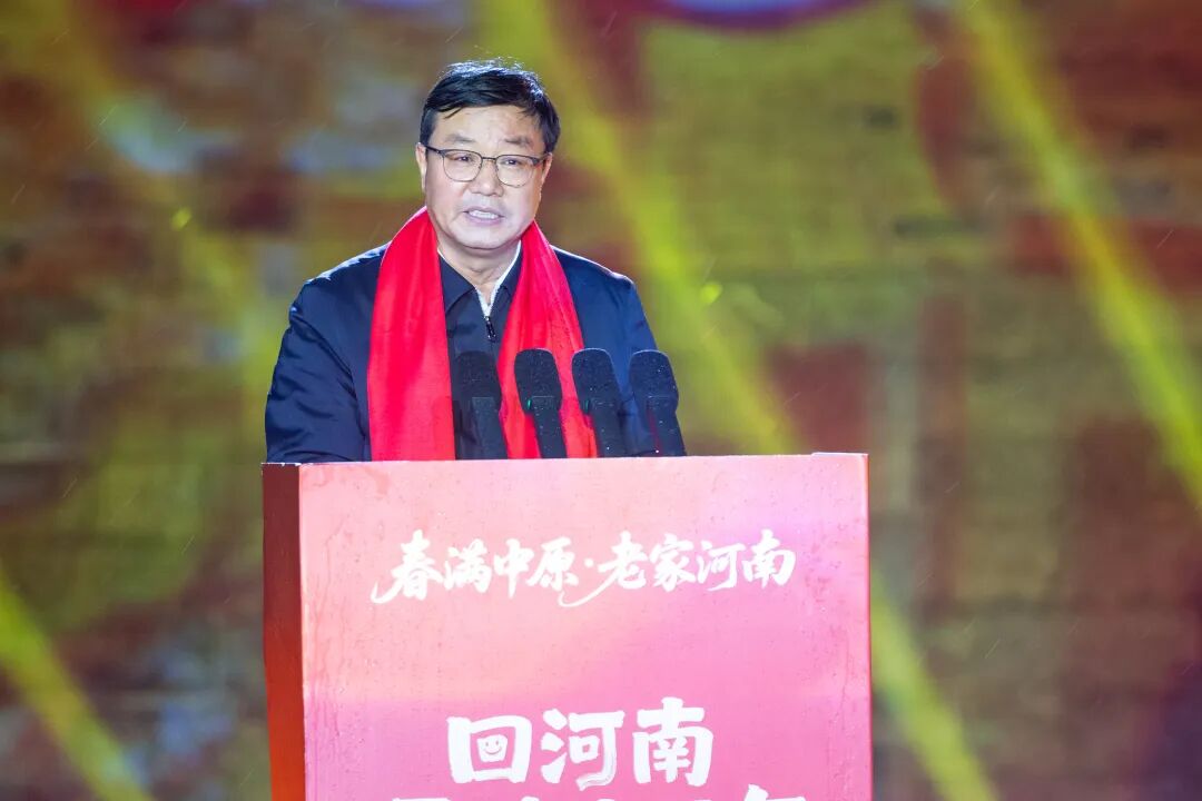 河南省文化和旅游厅党组书记、厅长黄东升在致辞中说,中国人的年,总要回到“老家”才算圆满。此时此刻,中原大地正迎来一年忙碌后的短暂歇息,辞暮尔尔,烟火年年。今晚,街市如昼人如潮,千年社火正青春。他向四海宾朋、八方游子、父老乡亲发出“回河南,寻味中国年”的诚挚邀请:请大家在这个春节回河南,吃大席、享美食,寻找人间烟火味儿;赶庙会、赏非遗,体验中原乡土味儿;看演艺、买文创,邂逅潮流时尚味儿;进景区、逛街区,感受老家人情味儿。