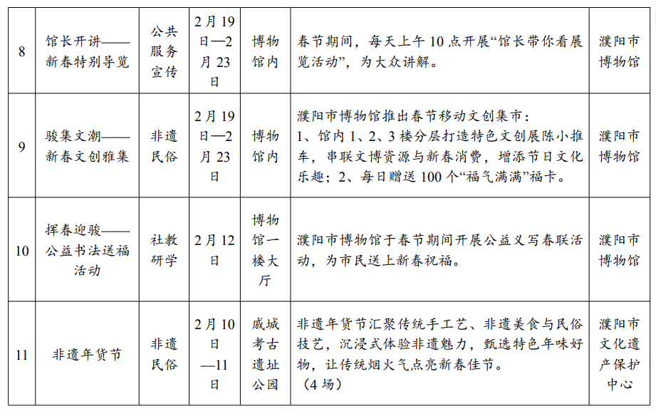 2026年春节将至,濮阳市文博系统结合马年象征的“奋斗、自强、进取”精神与濮阳“中华龙乡”的龙文化,以“龙腾马跃,奋进濮阳”为时代寓意,精心策划推出“龙马颂春·文博纳福——博物馆里过大年”春节文博系列活动,2月10日至3月4日(腊月二十三至正月十六),四大板块35项精彩活动将陆续登场,为市民呈现一场文化盛宴。